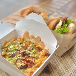 I ordered for my office, through uber eats but review is based on product and packaging. Really well packed in biodegradable materials. All food was labeled to reflect the name of the order whose it was! 10/10 this was so well done and the penmanship was beautiful! Food review: Broke Millionaire sandwich. Portions are significant, but there are some technical moments that can be tweaked or improved. Pork sausage-patty was dry and tasted sweet. I was definitely not expecting to get a sweet pork sausage patty and that really threw me off. The bacon and tater tots helped offset the sweetness a bit, but the bacon tater tot to sausage ratio is off. I would have prefer less of the sausage to balance out the flavors because right now this Sanwhich is overwhelmingly sweet. Also toasting the buna bit may help improve texture. It is a huge sandwich, and if you like savory over sweet, this is probably not your best option. Tater tots were delicious! And that bacon was thick crispy and delicious! Service and packaging was awesome, definitely recommend for office breakfast on order neatness. If you like savory have some good sauce at hand, this sandwich will need it!