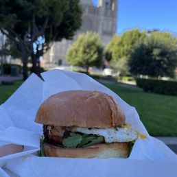 Me and my boyfriend were in SF and were craving some breakfast sandwiches. We stumbled upon the Bandit on Yelp and ordered online. I highly recommend ordering online to avoid any wait! We both ordered the bandit and enjoyed it. If you've ever had Eggslut, this is better in my opinion! I'll definitely be back to try the others.
